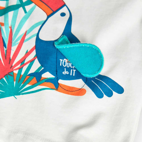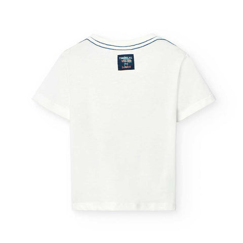 T-shirt della Linea Abbigliamento Bambino Boboli, con stampa multicolor sul davanti a tema tropicale.