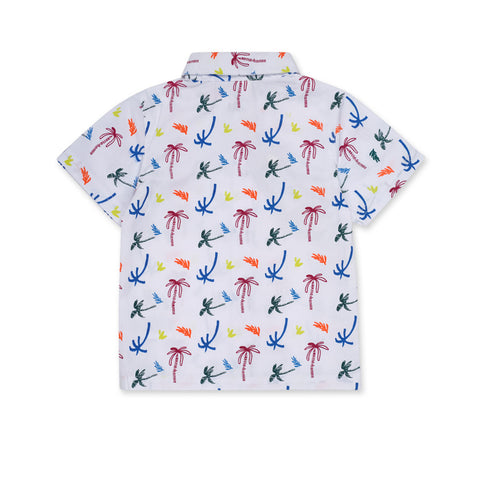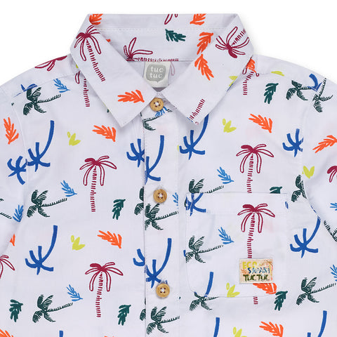 Camisa de la línea de ropa infantil Tuc Tuc, en popelina, con mangas cortas y bolsillo en el delantero. Estampado safari en todo el diseño.