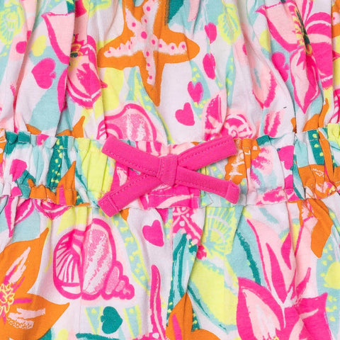 Combinaison avec short de la Ligne Vêtements Fille Tuc Tuc, avec cordon à la taille et bretelles. Motif marin en couleurs fluo.
