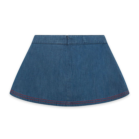 Jupe en jean de la Ligne Vêtements fille tuc Tuc, avec broderie sur le côté et taille réglable.