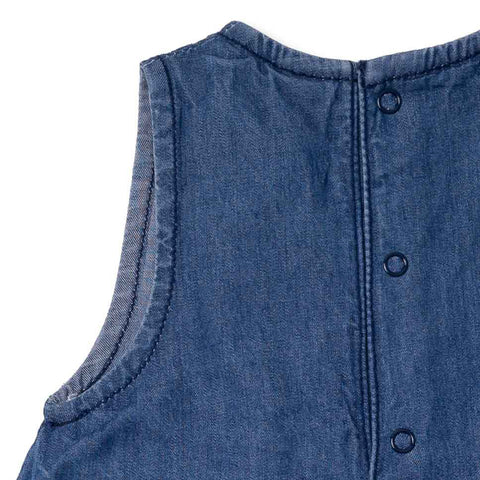 de la Ligne Vêtements Fille Tuc Tuc, couleur denim avec broderies colorées sur le devant.