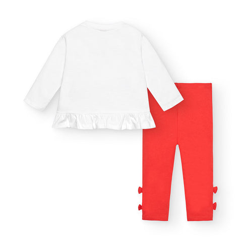 Complet deux pièces de la Ligne Vêtements Fille Tuc Tuc, avec un imprimé multicolore sur le t-shirt et des leggings unis.
