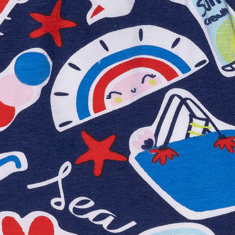 Complet de plage de la Ligne Vêtements Fille Tuc Tuc, avec un top à motif et un short uni avec des fronces au bas.