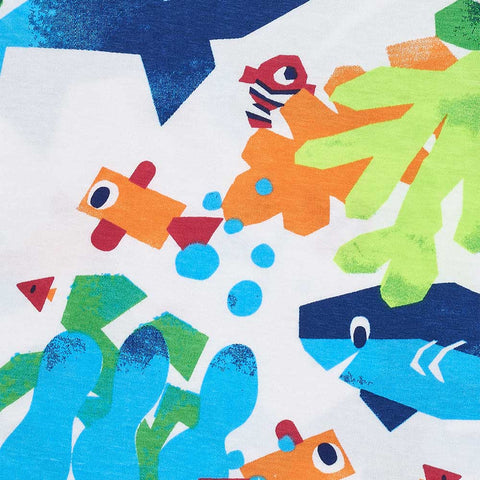 Maglietta de la Ligne Vêtements Enfant Tuc Tuc, avec des boutons-pression sur l'épaule et une magnifique impression multicolore à l'avant.
