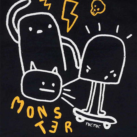 Maglietta de la Ligne Vêtements Enfant Tuc Tuc, avec boutons-pression sur l'épaule et dessins fluo sur le devant.