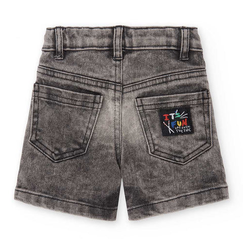 Pantalons courts de la ligne Vêtements enfant Tuc Tuc, en denim, avec revers en bas et cordons à la taille.