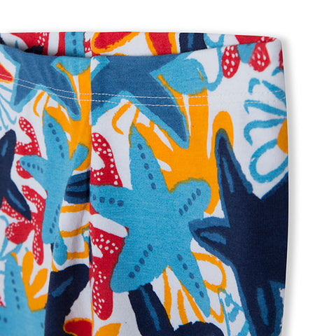 Leggings pirate de la Ligne Vêtements Babina Tuc Tuc, collection Red Submarine, avec un motif all over d'étoiles de mer colorées.