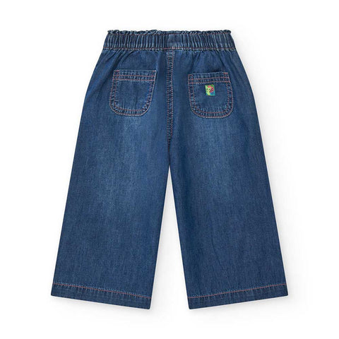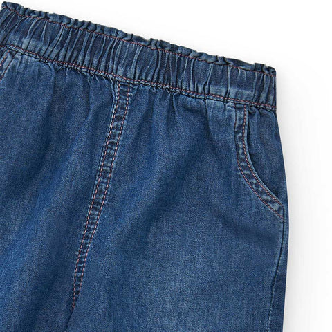Pantalon jean de la Ligne Vêtements Fille Tuc Tuc, avec élastique à la taille et étoiles multicolores brodées en bas.