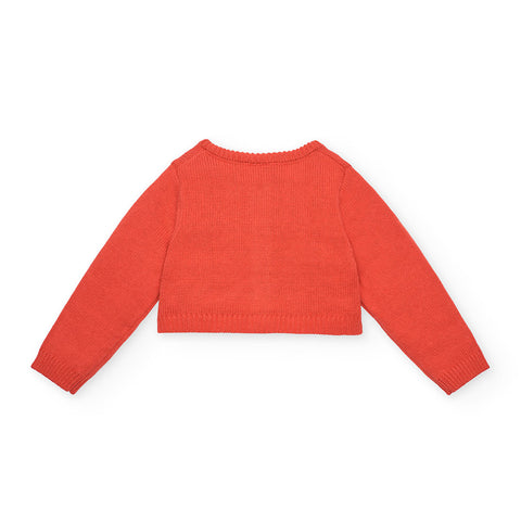 Cardigan de la ligne Vêtements Fille Tuc Tuc, avec une petite broderie sur un côté et un modèle court boléro.