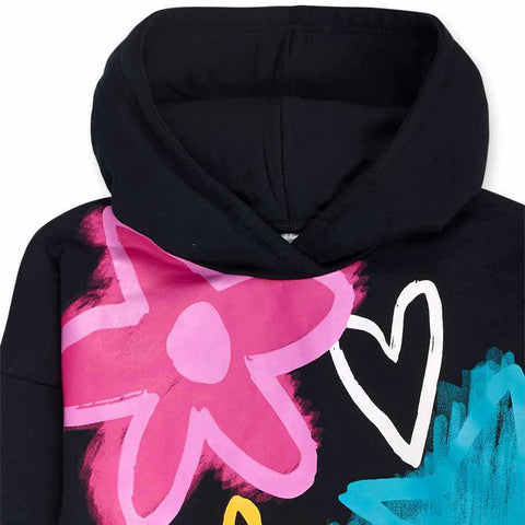 Abito en molleton avec capuche de la Ligne Vêtements Fille Tuc Tuc uni avec des imprimés aux couleurs fluo sur le devant.