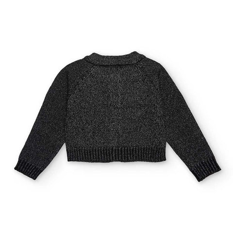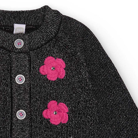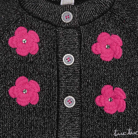 Cardigan court de la Ligne Vêtements Fille tuc Tuc, avec des fleurs brodées sur le devant et un travail en fil lurex.