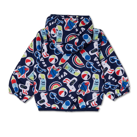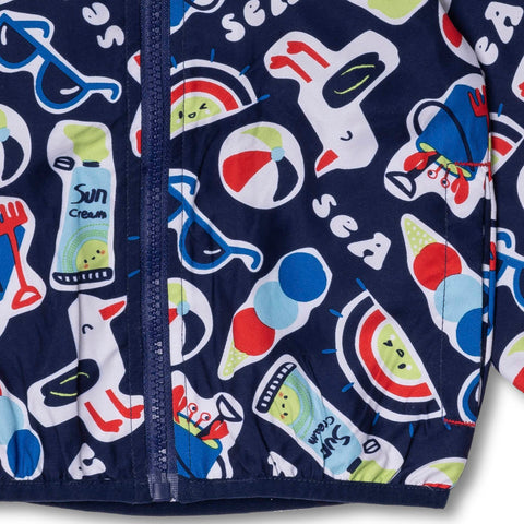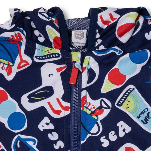 Veste légère coupe-vent de la ligne Vêtements enfant Tuc Tuc, avec motif plage intégral.