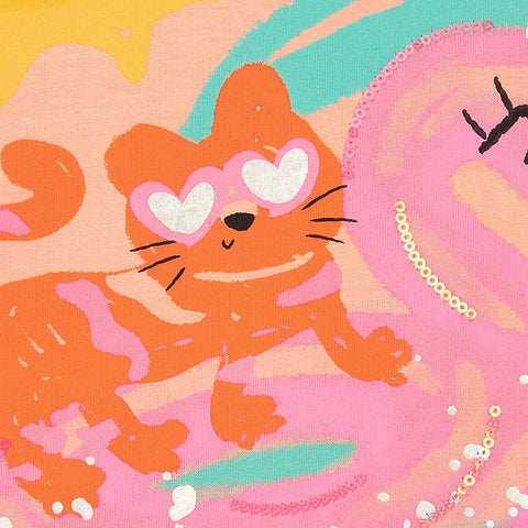 T-shirt de la Ligne Vêtements Fille Tuc Tuc, avec boutons-pression sur l'épaule et impression colorée sur le devant.
