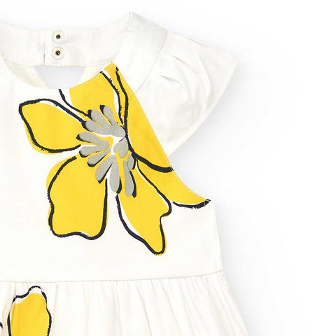 Robe Ligne Vêtements Fille Tuc Tuc, avec taille cintrée et large décolleté dans le dos. Sur le devant, belle impression florale en contraste de couleur.