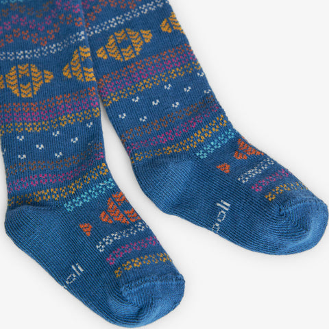Calzamaglia de la Ligne Vêtements Fille Boboli, avec des motifs géométriques des années 70 sur fond bleu.