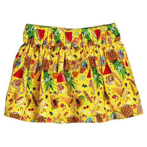Jupe de la ligne de vêtements pour fille Rosalita Senoritas, avec un nœud à la taille et un motif multicolore partout.