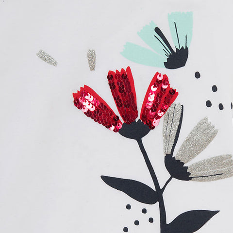 T-shirt de la ligne Vêtements Fille Tuc Tuc, collection Sea Lovers, avec impression colorée sur le devant et détails pailletés et de sequins. Application d'élastique et fronces sur le bord des manches.