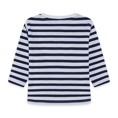 T-shirt à rayures de la Ligne Vêtements Enfant tuc Tuc, collection Red Submarine, avec petite poche sur le devant et petits boutons au col.