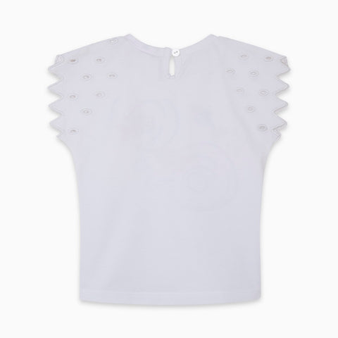 Blouse de la Ligne Vêtements Fille Tuc Tuc avec détails ajourés sur les bretelles et impression colorée de poissons rouges.