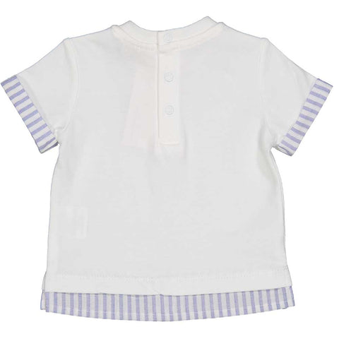Maglietta de la Ligne Vêtements Enfant Birba, à manches courtes avec un petit ours imprimé sur le devant et des finitions à rayures.