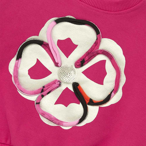 Survêtement de la ligne Vêtements Fille Tuc Tuc, avec sweat uni orné d'une fleur appliquée au centre et leggings à motif.