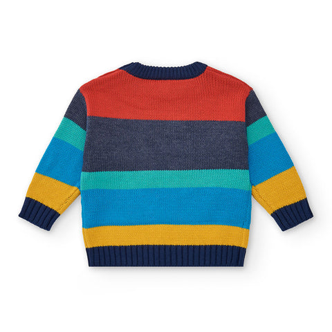Pull de la ligne Vêtements Enfant Tuc Tuc, avec motif à rayures et petites broderies sur le devant.
