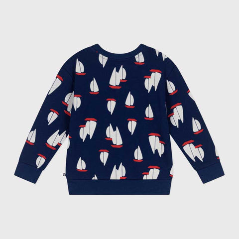 Maglia in tessuto felpato morbido della Linea Abbigliamento Bambino Petit Bateau con barche stam...