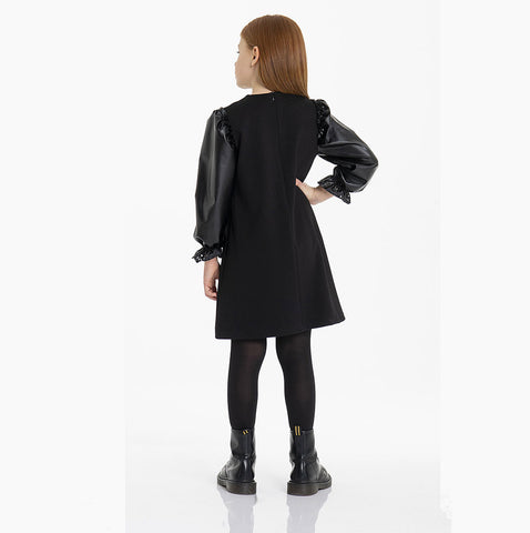 Abitino de la ligne vêtements fille Fracomina Mini, avec manches en simili cuir, perforées aux poignets. Fermeture éclair au dos