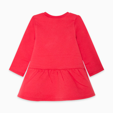 Robe en molleton de la Ligne Vêtements Fille Tuc Tuc avec boutons-pression sur la bretelle, petit nœud sur un côté et application sur le devant.