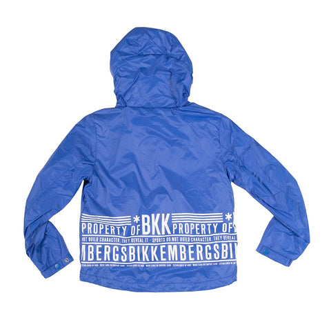 Jacket from the Bikkembergs children's line, windproof, with zip closure and hood.  Lined inside and with contrasting color print on the back.