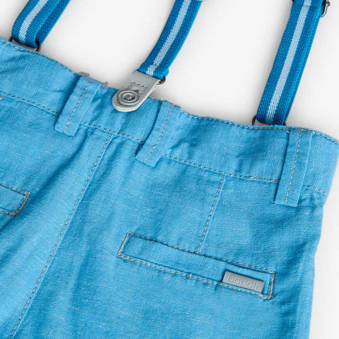 Composition: Pants: 80% Cotton 20% Linen Suspenders: 87% Polyester 13% Elastane Washing instructions: Washing instructions: Wash in washing machine, maximum temperature 30º C. Do not bleach. Not suitable for tumble drying. Iron at low temperature, maximum 110º C. Do not dry clean.