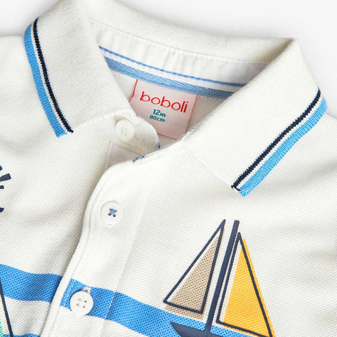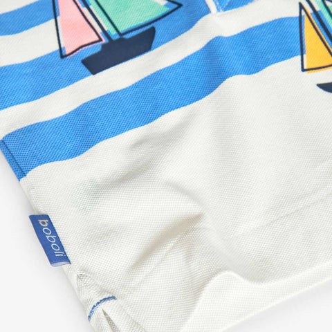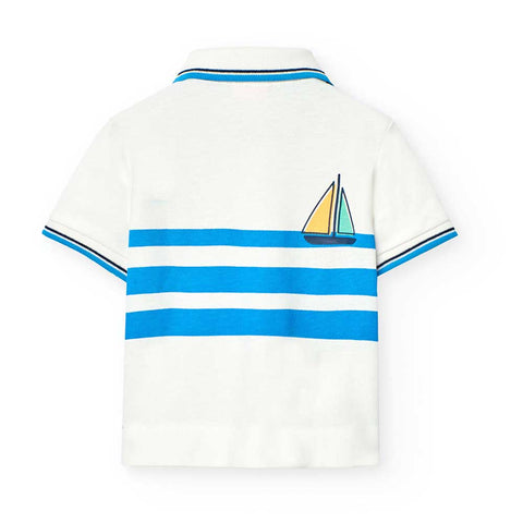 Polo of the Children's Clothing Line Boboli, in piqué, with a print on the front in soft colors.