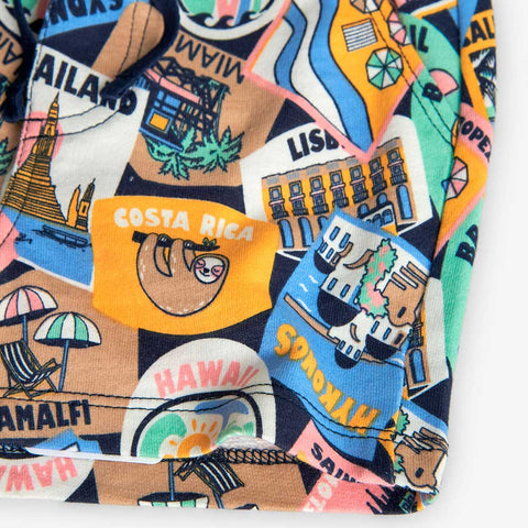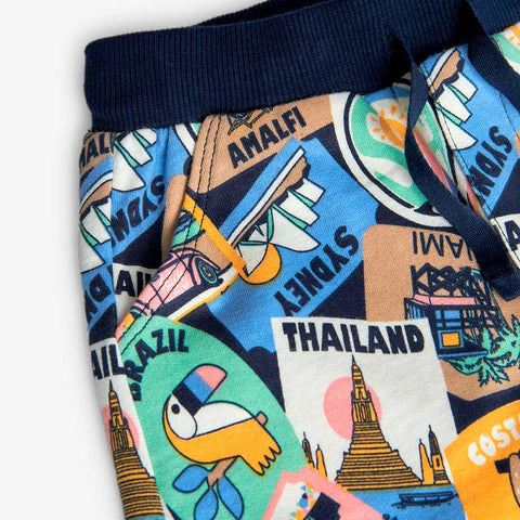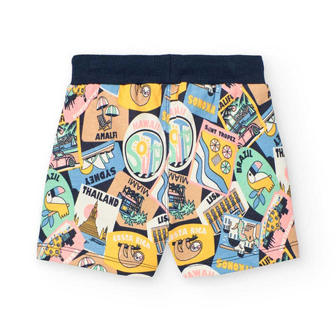 Shorts from the Boboli Children's Clothing Line, with a holiday all-over pattern, elastic with drawstrings at the waist.