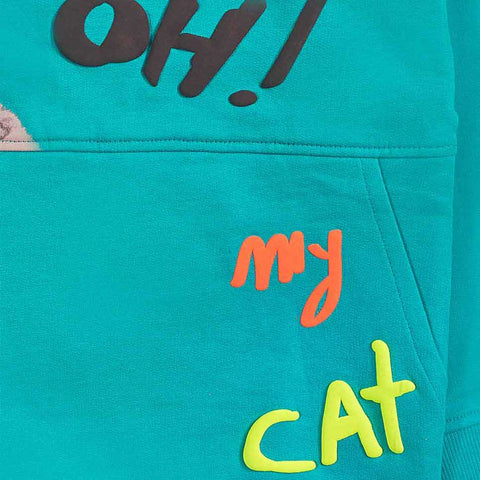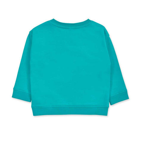 Aqua green sweatshirt from the Tuc Tuc children's clothing line, with contrasting color inserts.