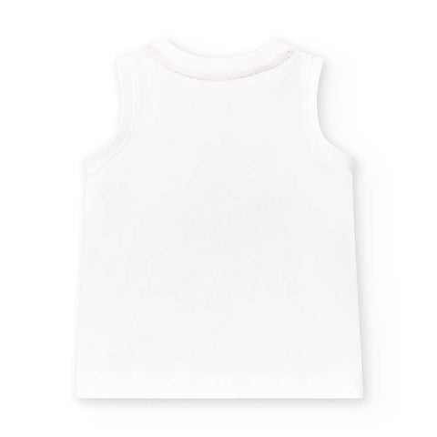 Tank top from the Tuc Tuc Children's Clothing Line, with a colorful print on the front and fabric applique.