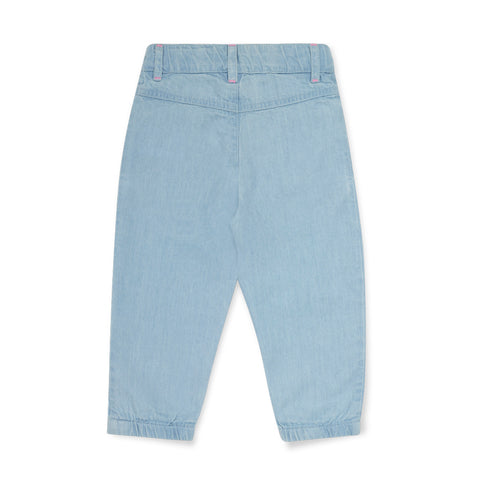 Jeans pants from the Tuc Tuc Girls' Clothing Line, with an elastic waistband and light wash.