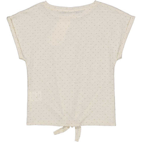 Top from the Trybeyond Girls' Clothing Line, with knot on the front and lurex micro-polka dot pattern.