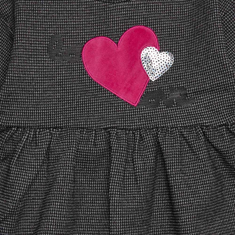 Dress from the Tuc Tuc Girls' Clothing Line, with fabric featuring metallic thread and a small heart application on the front.