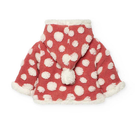 Jacket from the Boboli Girls' Clothing Line, in fabric with a hood and buttons on the front, with a polka dot pattern and fur inside.