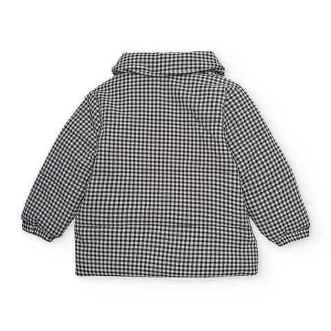 Down jacket from the Girls' Clothing Line tuc tuc, with a micro-check pattern and an applied heart at the bottom. Double closure with zip and buttons.