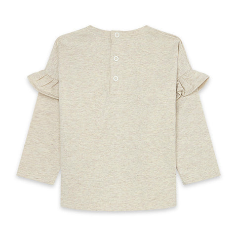 Long-sleeved T-shirt from the Tuc Tuc children's clothing line, Highlands collection; with riccetto on the shoulder strap and cute dinosaur on the front.