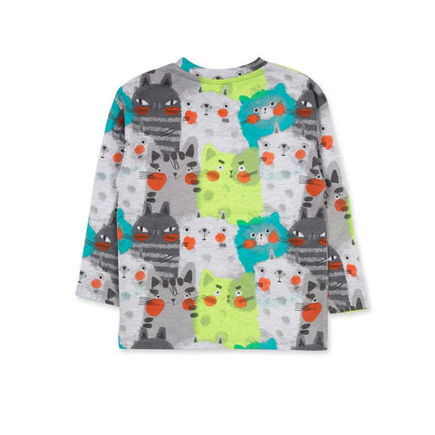 Long-sleeved t-shirt from the Tuc Tuc children's clothing line, with an all-over cat pattern.