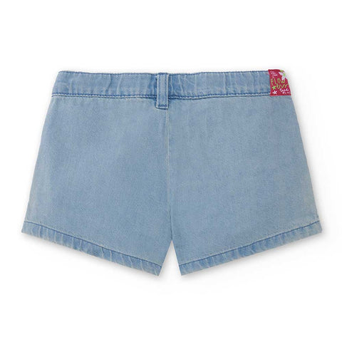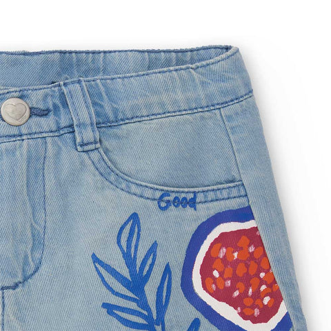 Jeans shorts from the Tuc Tuc Girls' Clothing Line, loose fit, with adjustable waist size. Colorful prints on both sides.
