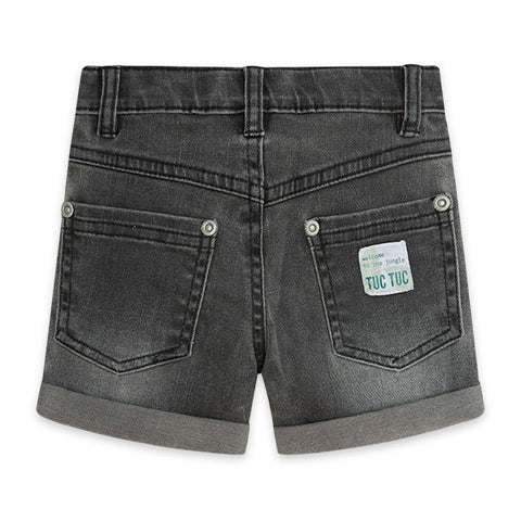 Shorts from the Tuc Tuc Children's Clothing Line, In The Jungle collection, with application of fabric on one side and adjustable waist size.