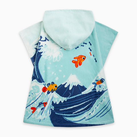 Poncho from the Tuc Tuc Childrenswear Line with stylized fish designs red all-over.