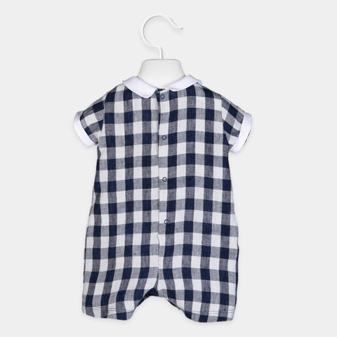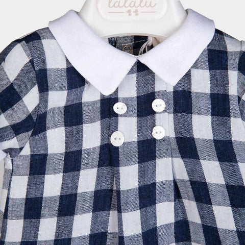 Romper from the Lalalù Children's Clothing line, with shirt collar and buttons applied on the front.