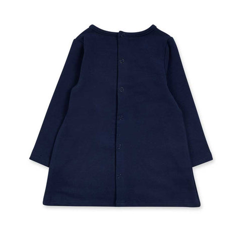 Dress from the Tuc Tuc girls' clothing line, with print on the front and fabric application. Buttoned on the back with press studs.