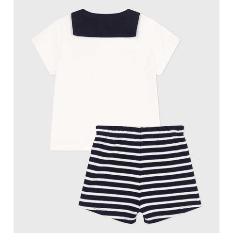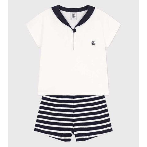 Set  della Linea Abbigliamento Bambino Petit Bateau in tessuto a costine 1x1, un materiale elasticizzato e confortevole, emblematico di Petit Bateau.
