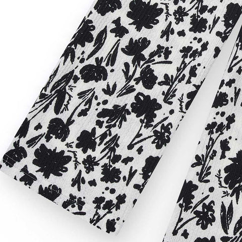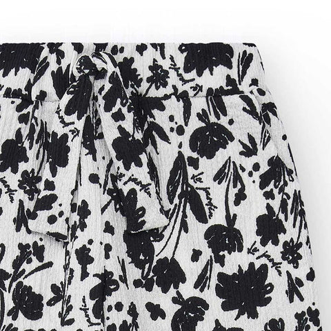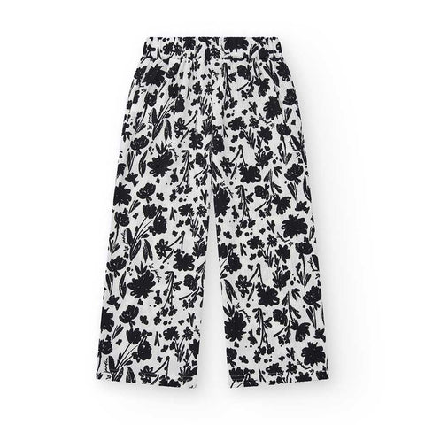 Wide pants from the Nath Kids Girls' Clothing Line, made of crepe fabric with a pattern of small black flowers on a white background.
