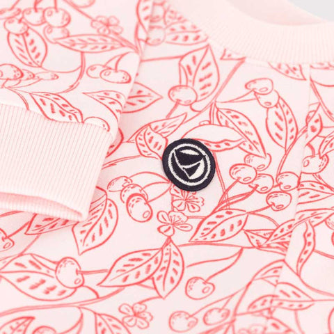 Maglia della Linea Abbigliamento Bambina Petit Bateau in tessuto felpato leggero con ciliegie stampate, un materiale che coniuga comfort e leggerezza. Scollo arrotondato. Bordo a costine sullo scollo, a fondo manica e in basso. Giromanica ribassato.